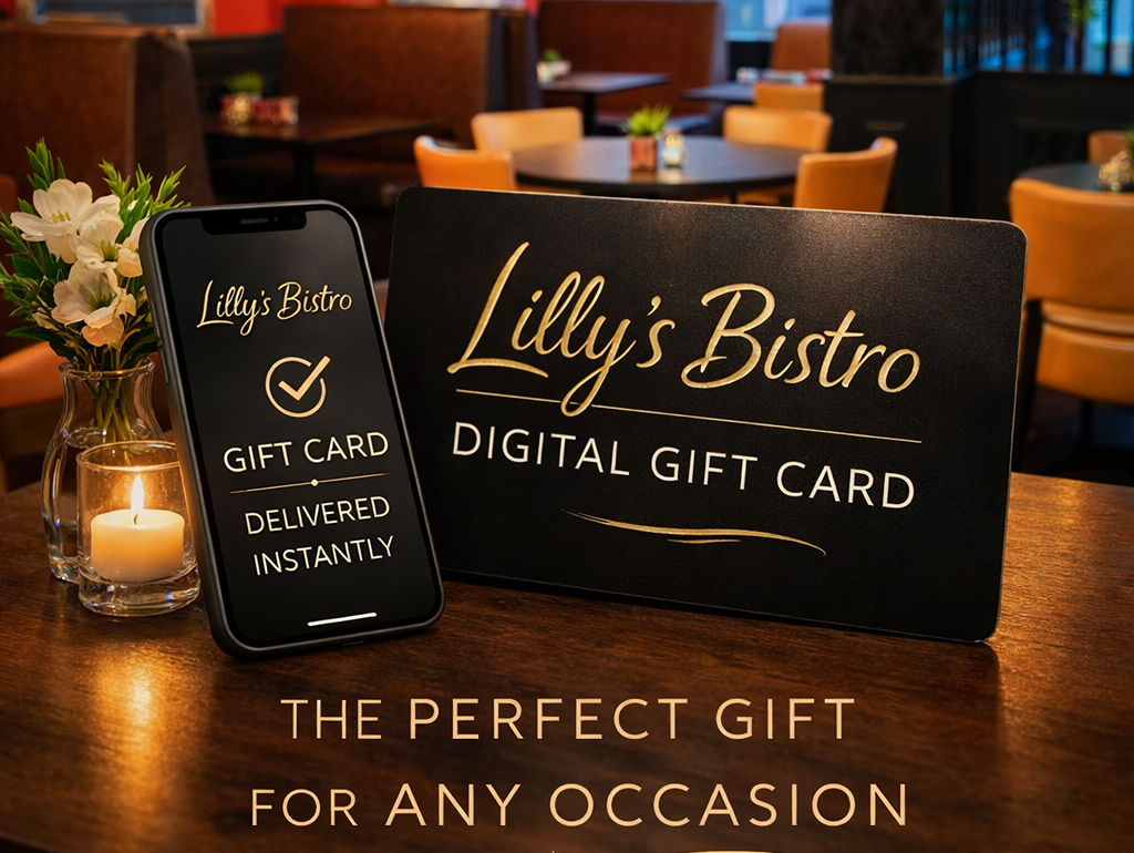 Looking for the perfect gift? Lilly’s Bistro Digital Gift Cards are a simple and thoughtful way to treat someone special to a visit to our bistro.